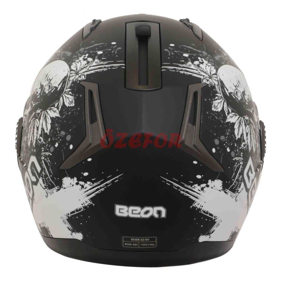 BEON- ÇENE AÇILIR VİZÖRLÜ KASK [B700] [SİYAH -KURU KAFA DESENLİ] [L]