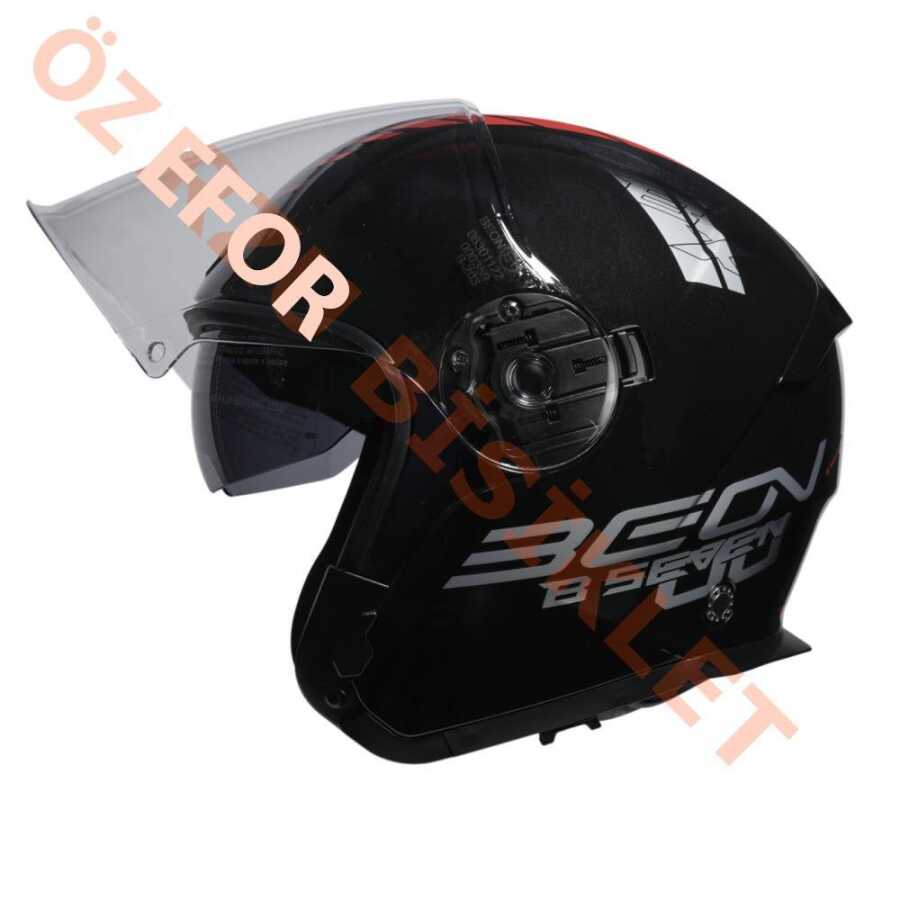 BEON- ÇENESİZ VİZÖRLÜ YAZLIK KASK [B203] [SİYAH-KIRMIZI] [L]