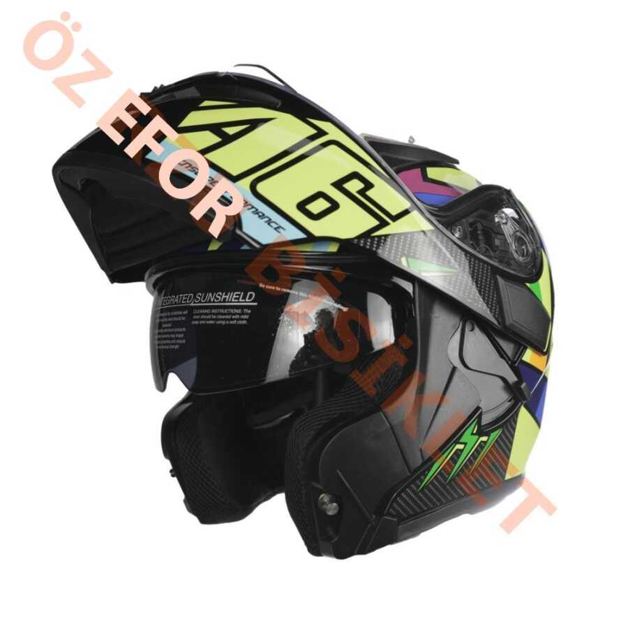 KC-ÇENE AÇILIR VİZÖRLÜ KASK [KC902] [SARI - SİYAH] [L] E BELGELİ