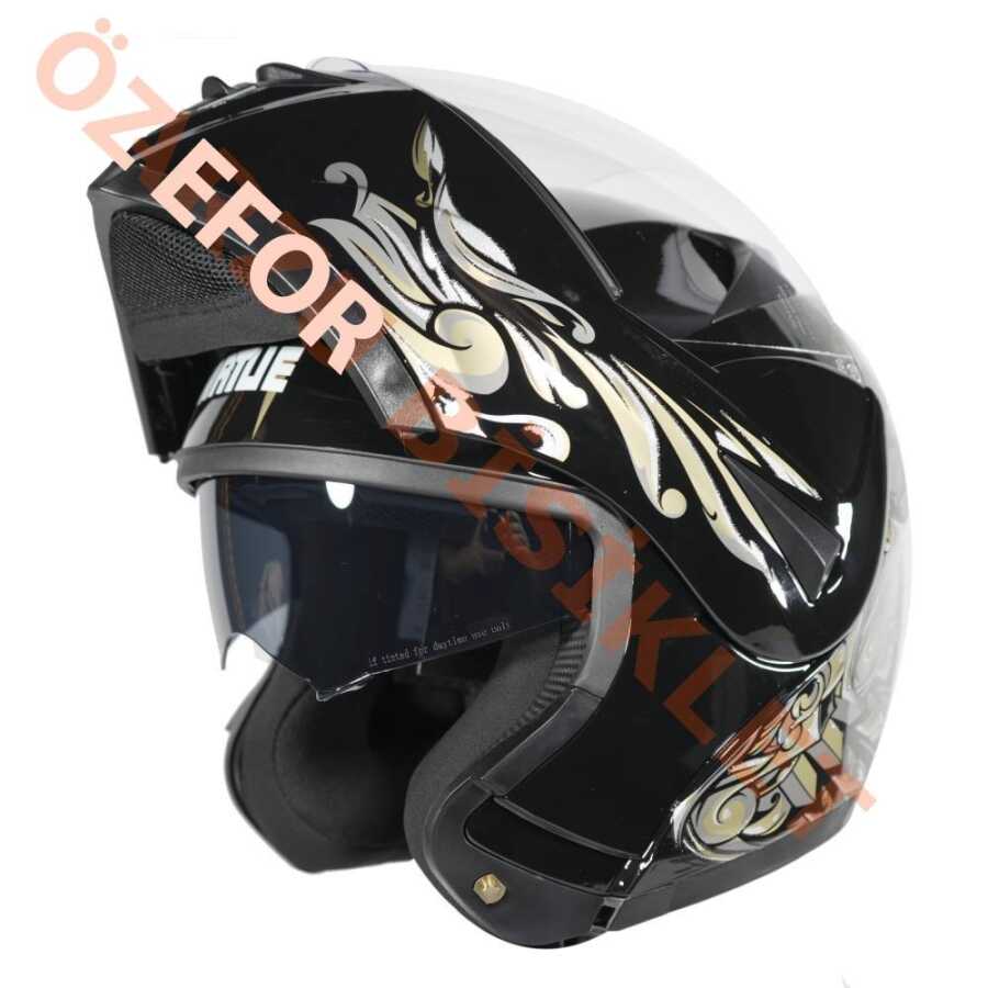 VRT - ÇENE AÇILIR VİZÖRLÜ KASK [MD-808] [SİYAH - GOLD] [M]